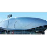 板面效果比常見的通過分割焊接生產(chǎn)的雙曲板平整度好,安裝效果比所謂的以直帶曲等假雙曲的弧線圓滑,充分展示了雙曲面鋁單板在金屬幕墻上無可替代的獨(dú)特魅力。